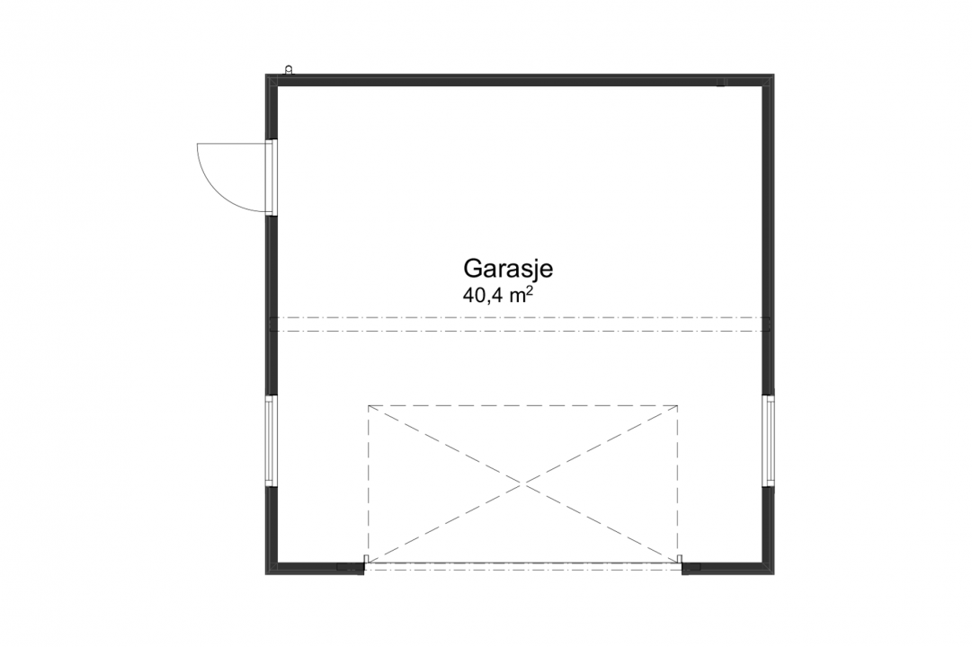 Garasjen består av ett stort garasjerom på 40m2, med vinduer på både øst- og vestveggen for godt lysinnslipp.